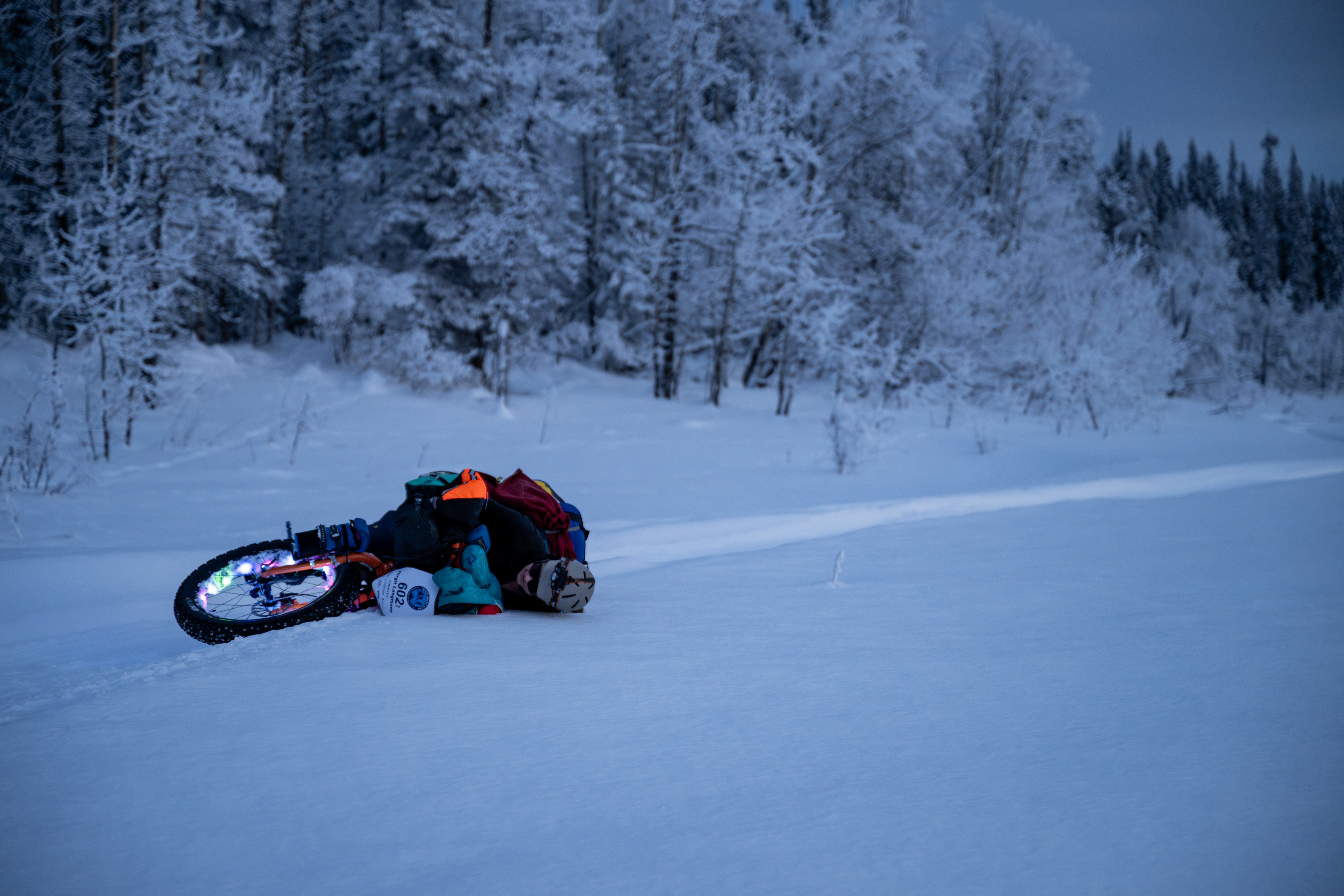 Birgit Langmann, an experienced fatbiker from Alaska, decided to turn around and scratch shortly after heading out. Everyone else gave it a go.