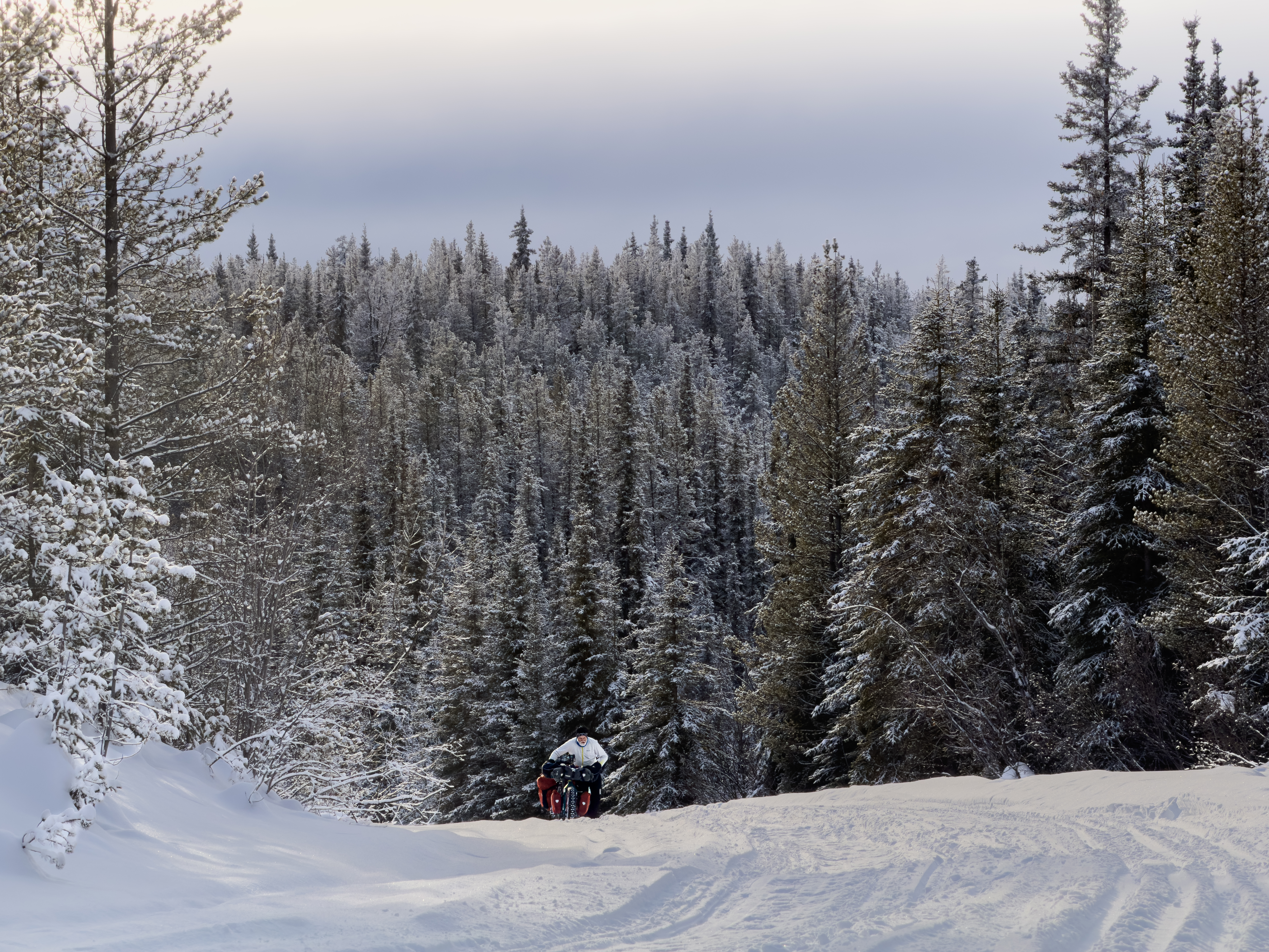 On the South Canol Road, things became even more challenging. While the trails have been slightly firmer, temperatures of around – 5° to 0° Celsius meant that the trails still stayed soft. On top of that, we got fresh snow. AND elevation …